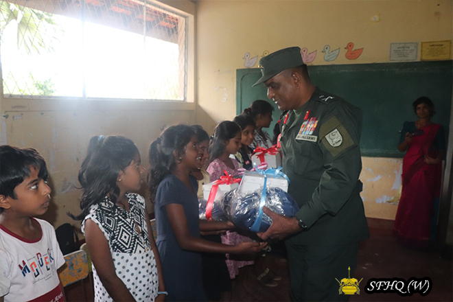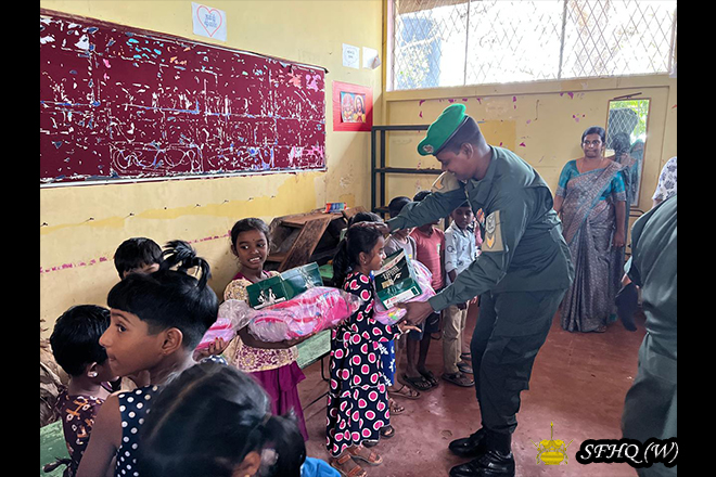 A School Equipment Distribution Programme was conducted on 22 December 2025 to provide essential school supplies required for one academic year to 115 school children affected by recent floods. In addition, gift items were presented to 25 teachers serving at the beneficiary schools.