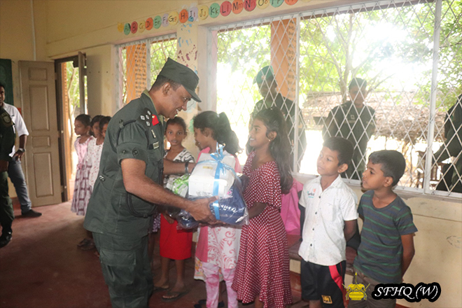 The programme was carried out for the following schools under the area of responsibility of the 542 Infantry Brigade. Madupara Sinhala Maha Vidyalaya, Kaddiadappana Roman Catholic Tamil Maha Vidyalaya, Thampanekulam Roman Catholic Tamil Primary School, and Panniwettuvan Roman Catholic Tamil Primary School.