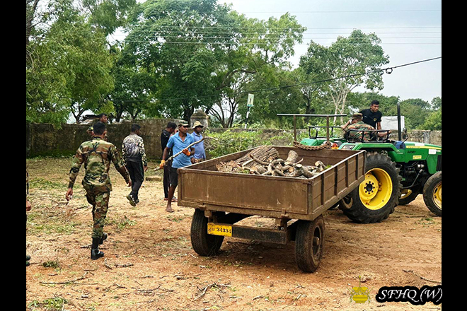 Following the Diṭvā Cyclone that struck on 26 November 2025, disaster relief operations were immediately initiated under emergency conditions on the directives of the Commander, Security Forces (Wanni), Major General K M P S B Kulatunga RSP ndc psc. Accordingly, all Army personnel of Divisions, Brigades, and Units under the Security Forces Headquarters (Wanni) were promptly mobilized to carry out relief operations and Civil-Military Cooperation (CIMIC) tasks in support of communities affected by Cyclone Ditwah and the prevailing adverse weather conditions.