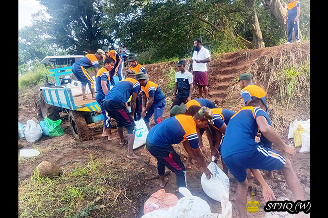 Under the 212 Infantry Brigade, troops contributed to relief efforts following adverse weather conditions reported on 17 December 2025. Under the guidance of the Commander, 212 Infantry Brigade, Brigadier B A M P Balasuriya RSP, Army personnel supported the reconstruction of tank bunds and roads within the Brigade’s area of responsibility affected by Cyclone Ditwah. Accordingly, 15 troops of the 7 (V) Sri Lanka Armoured Corps assisted residents of No. 604 Galapitagala village in reconstructing the breached bund of Pandith Wewa near its spill gate.