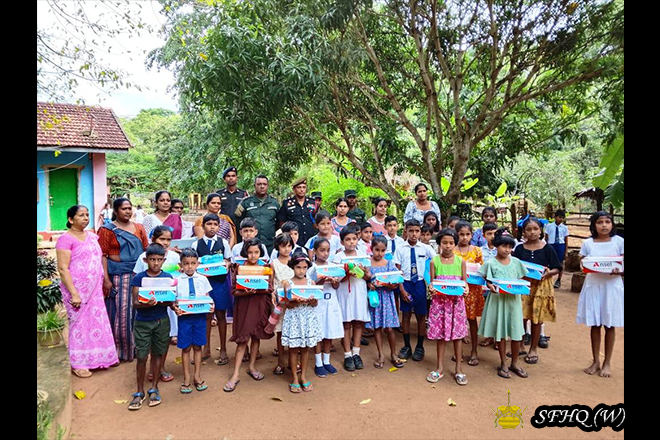 Furthermore, troops of the 4 Sri Lanka National Guard distributed essential items to students of Rajanganaya Track 4 Primary School and to eight pregnant mothers affected by flooding, through a donation made by Mrs. Vidumini De Silva, Galle District Manager of People’s Bank. Additionally, 20 troops assisted in cleaning contaminated wells in the Rajanganaya Track 9 area and the Galkadawala Grama Niladhari Division affected by flood conditions.
