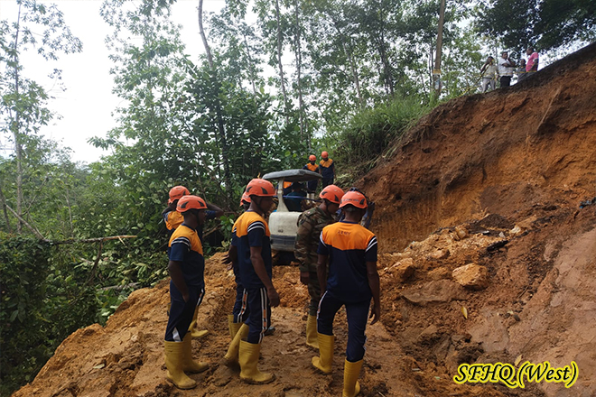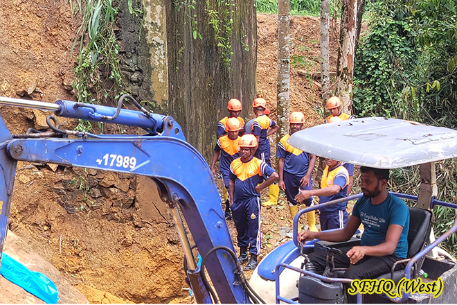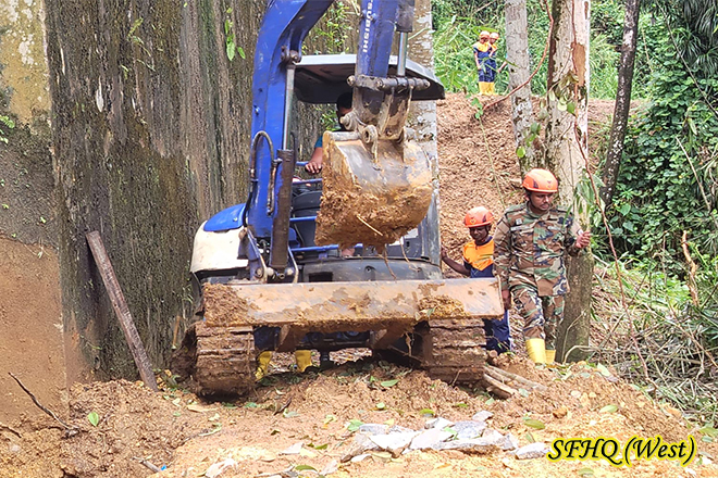 Under the directions and guidence of the GOC 61 Inf Div, and the Supervising of the Comd 573 Inf Bde 1 X 15 troops of the 20 SLLI carried out road clearance and restoration work along the Tawalama–Pitigala main road near Ayudagala, which was damaged due to a landslide 1010 hr on 21 Oct 2025.
