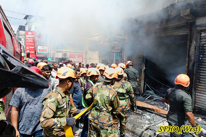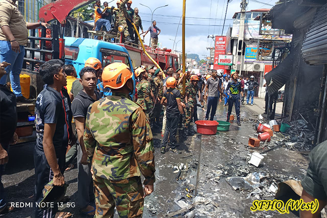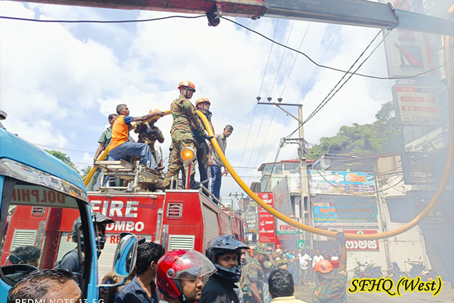 03 x 34 Troops of the 8th Battalion of Sri Lanka Sinha Regiment assisted in extinguishing a fire broke out in a building at Kegalle town around 1010 hrs on 23 September 2025, under the guidance of the Commanding Officer of the 8th Battalion Sri Lanka Sinha Regiment. The troops successfully controlled and extinguished the fire, with the assistance of local authorities. No damage or injury was reported to any person during the incident.