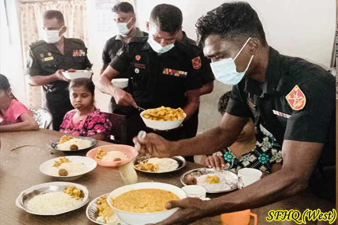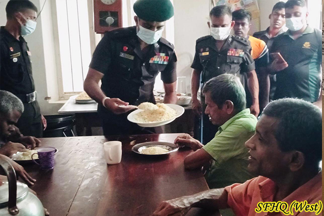 With the supervision of Commanding Officer 9 Battalion Sri Lanka Sinha Regiment provided a lunch to 58 x blind members at Shakthi Blind Home located in the Ovitigamuwa South of Kirinda Puhulwella from 1200 hr to 1330 hr on 19 January 2026 with the participation of 02 x 15 troops.