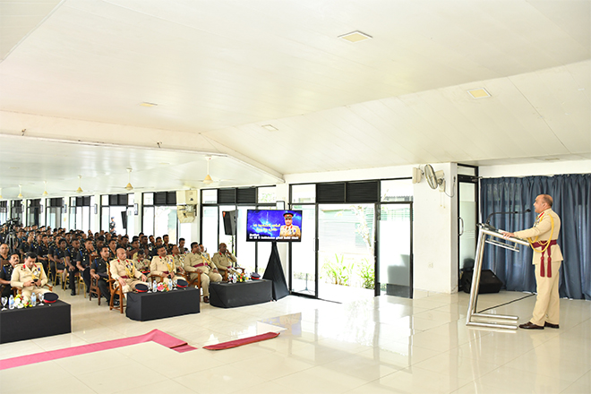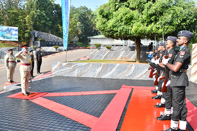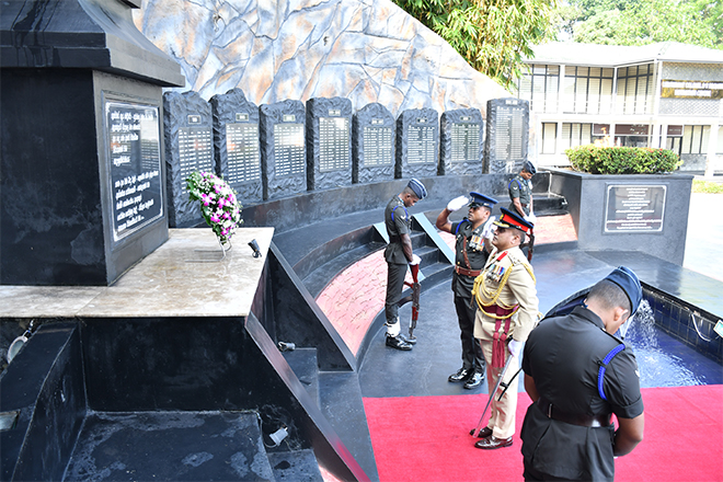 The day commenced with a warm welcome from Centre Commandant Brigadier RC Wijekoon USP psc and a Guard Turnout at the entrance. The Colonel Commandant then paid tribute to fallen war heroes by laying a floral wreath at the monument in their honor.