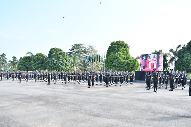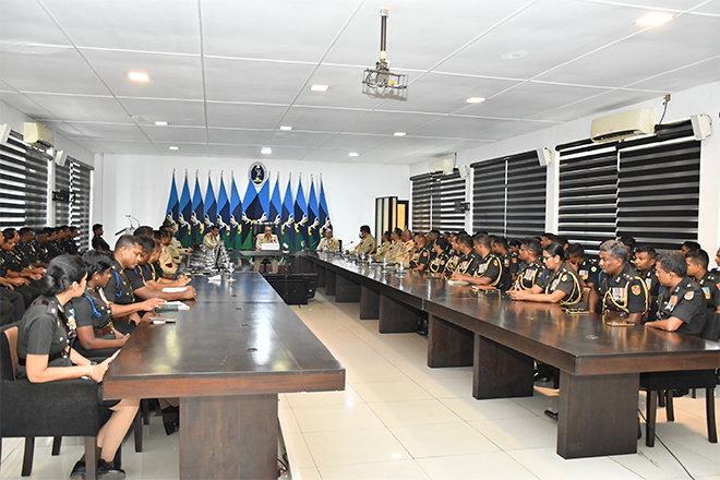 The Colonel Commandant then addressed all officers, including COs and council members, at the conference hall. The day's proceedings concluded with a staff lunch at the Regimental Officers’ Mess.