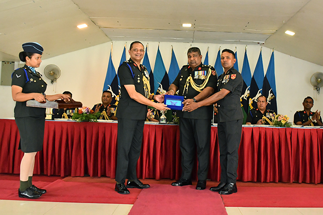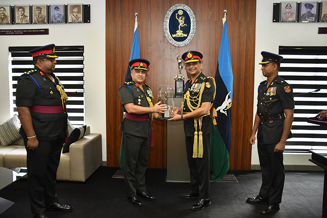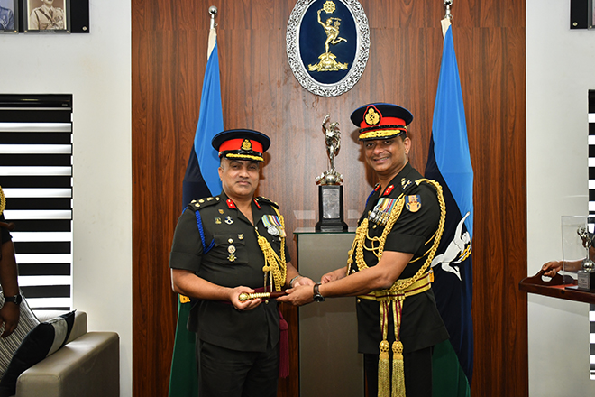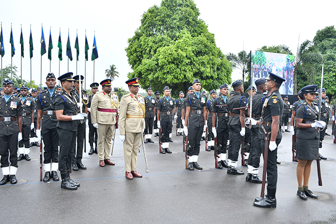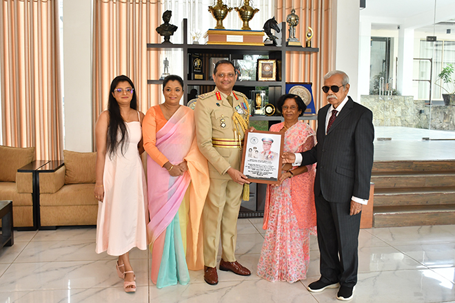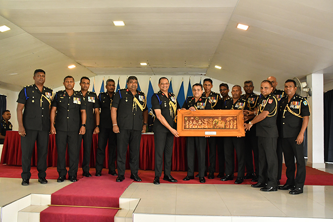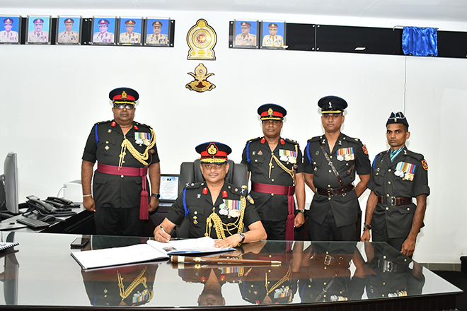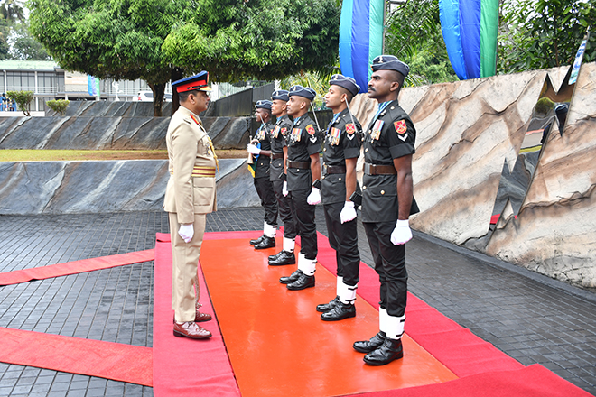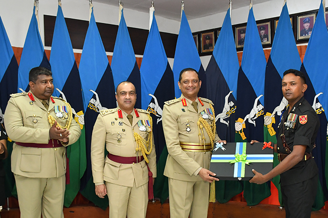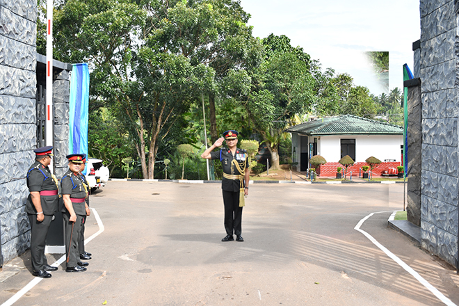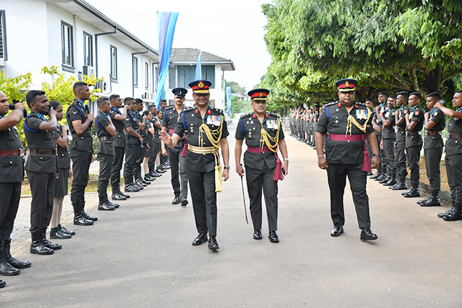 Later on, he penned down some complimentary remarks on the visitor's book at the Colonel Commandant's Office and he symbolically handed over the Colonel Commandant’s cane to the incoming Colonel Commandant Brigadier KMG Bandaranayake USP ndc psc. Soon after, a street lining bade farewell to the retiring Senior Officer.