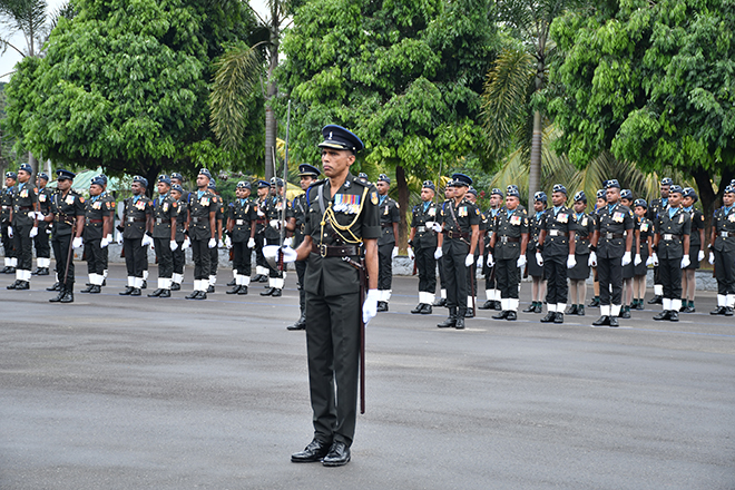 Afterwards, he posed for a group photograph with all Officers and took part in a tea arrangement at the Warrant Officers and Sergeants' Mess before he participated in an All-Ranks lunch where he addressed the troops.