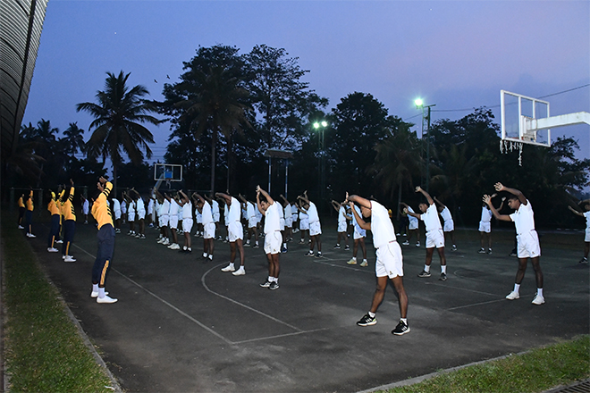 The training day begins with the advance Fat Burning Workout Session, conducted at the playground by instructors from the Army Physical Training School, Panagoda. After that, Officers refresh their sword drill skills with the help of Drill Instructors at RHQ SLSC.