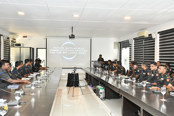 Subsequently, a group presentation was conducted by officers from JCC 34 and JSC 30 on “Future Battlefield Communication System in SL Army”. The session emphasized the importance of updating to the modern technologies and how to face the emerging challenges in sense of reliable communication. The session was followed by the fruitful Question and Answer session which help to enhanced the knowledge of Officers to execute well in communication tasks.