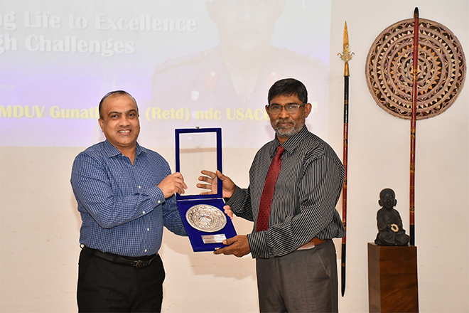 At the conclusion of the session, the Chief Signal Officer and the Colonel Commandant of Sri Lanka Signal Corps expressed his appreciation for Major General MDUV Gunathilake (Retd) ndu USACGSC and presented him with a token of appreciation for his valuable contribution.