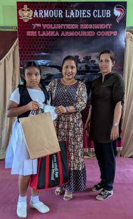 Each student received a package containing books, stationery, and clothing, while their families were provided with ration packs including dhal, sugar, biscuits, soaps, canned fish, and tea leaves. The program concluded with the distribution of sweet packs to the students.