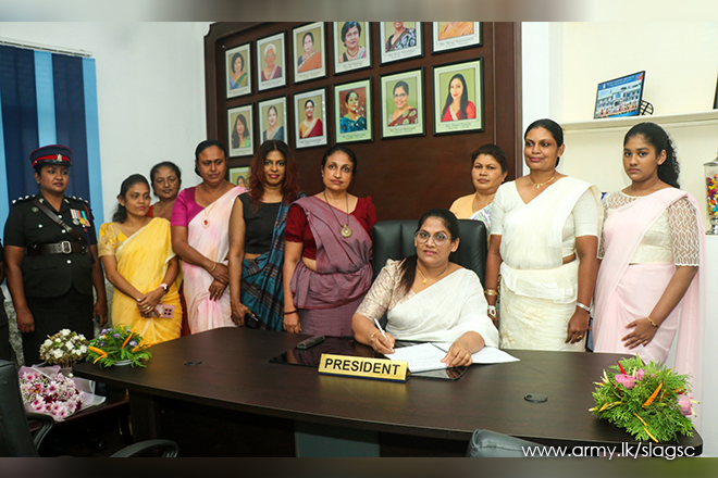 The occasion was graced by the Colonel Commandant of SLAGSC, Brigadier M.K.S.S. De Silva, the Secretary of the Seva Vanitha Branch, Mrs. Disna Kodithuwakku, the Director of the Directorate of Pay & Records, Brigadier T.G.N. De Silva, the Deputy Centre Commandant, Colonel W.T.A.S. Perera, senior Seva Vanitha members and lady officers.