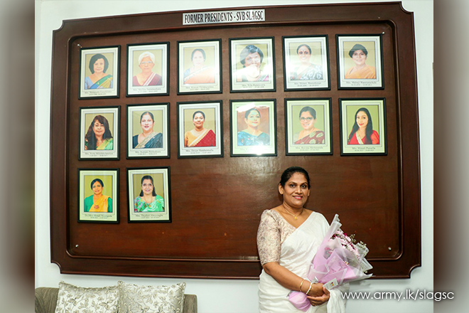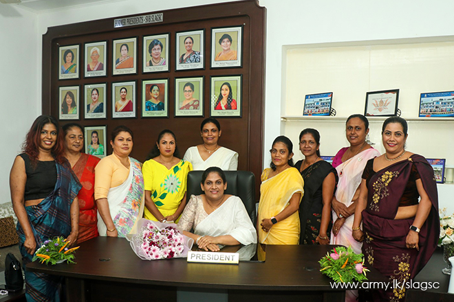 Mrs. Nayomani De Silva officially assumed duties as the President of the Seva Vanitha Branch – Sri Lanka Army General Service Corps (SLAGSC) on Wednesday, 8th October 2025, at 11:35 a.m. at the Seva Vanitha Office, Regimental Headquarters, Panagoda.