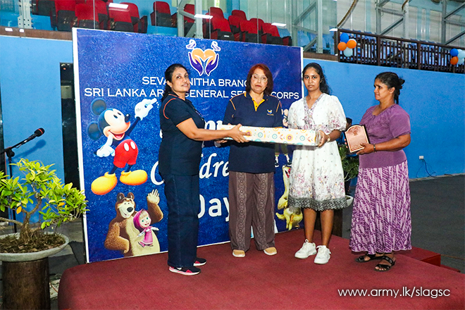 The Seva Vanitha Branch of the Sri Lanka Army General Service Corps (SLAGSC) successfully organized a Children’s Day Celebration on 27th September 2025 at the Gymnasium, Panagoda, for 100 children (grade 1 to 5)of officers, other ranks, war heroes, and the civil staff.