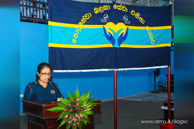 The event was graced by the Chief Guest, Mrs. Thushari Abeysinghe, the President of the Seva Vanitha Branch SLAGSC. She was accompanied by the Centre Commandant, Colonel KADCJ Kodithuwakku, and the Secretary, Mrs. Disna Kodithuwakku, along with senior Seva Vanitha members, Officers, and parents.