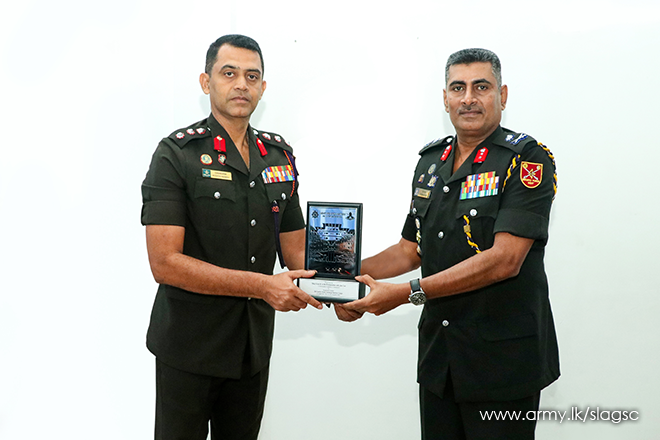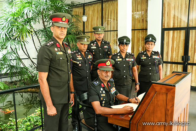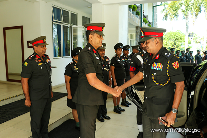 Upon arrival, the Commander Logistic Command was accorded with a drive pass and warmly received by the Centre Commandant SLAGSC Col KADCJ Kodithuwakku and all Staff Officers of the Regiment Centre SLAGSC participated and it was concluded by signing the visitor book.