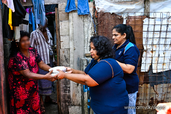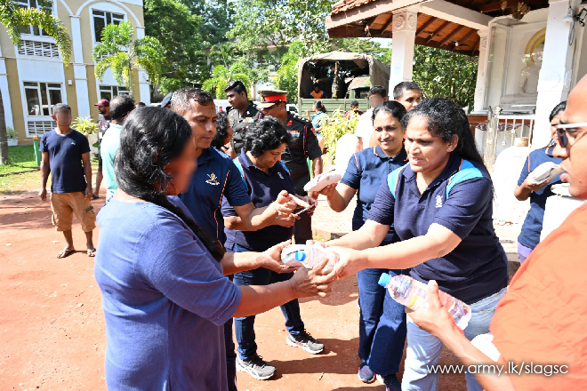 The distribution was guided by the Colonel Commandant of SLAGSC and the President of SLAGSC Seva Vanitha Branch Mrs. Nayomani De Silva, the Centre Commandant of SLAGSC and Senior members of the SLAGSC Seva Vanitha Branch. At the same time, a major support received from the Commanding Officer of 1 SLAGSC. The event is part of the Seva Vanitha Branch ongoing efforts to support army personnel and their dispersed families in Kollonnawa, Angoda and Mulleriyawa area during times of need. Furthermore, at the request of doctors at those evacuation centers, transportation assistance was provided to evacuate patients to IDH Hospital, ensuring access to treatment for patients.