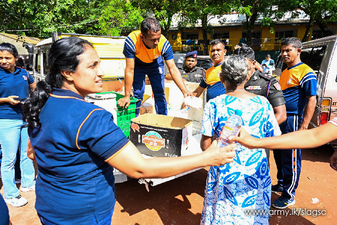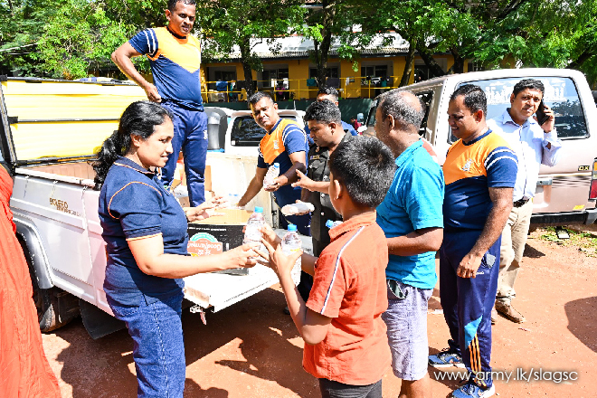 The Sri Lanka Army General Service Corps Seva Vanitha Branch, has distributed 500 lunch packs and water bottles, 500 dry ration packs with essential items and sanitary items to 500 families dispersed by recent floods on 30th November 2025. This initiative aims to provide essential support to those affected, ensuring they have access to food and clean drinking water.