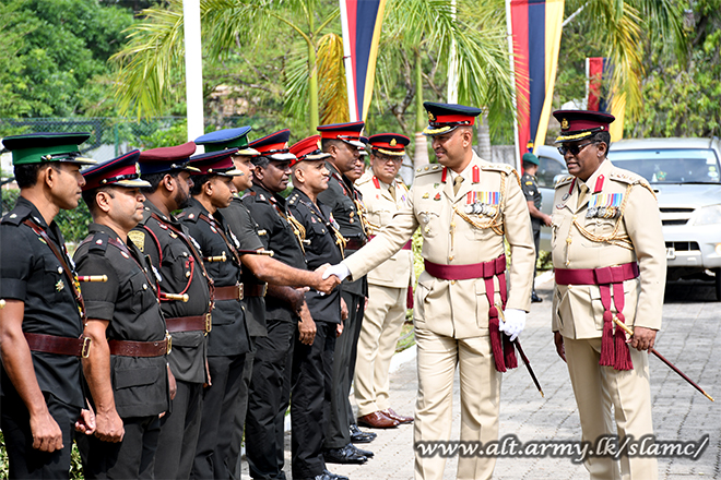 Upon his arrival at the SLAMC Regimental Centre premises, the newly appointed Centre Commandant was cordially received by the Deputy Centre Commandant and honoured with a Guard Turnout.