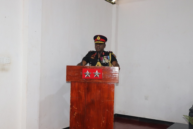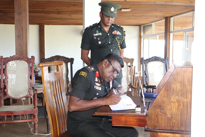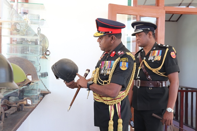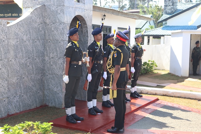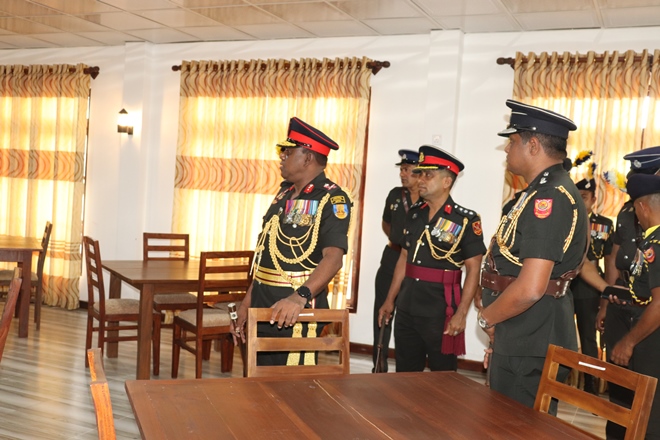 The Colonel Commandant was welcomed in a guard turnout, followed by a plantain of sapling, group photograph and briefing by the Commanding Officer Lieutenant Colonel WMCK Jayakody Lsc on the regiments duties and ongoing projects.