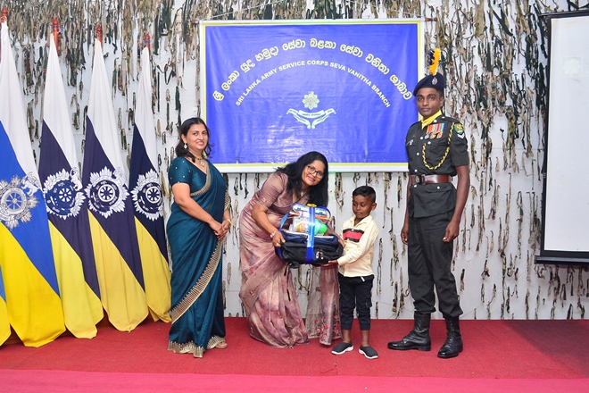 According to the 2025 annual programme of the Sri Lanka Army Service Corps Seva Vanitha Branch, the 6th Sri Lanka Army Service Corps distributed dry ration packs/first aid kits to the immediate family members of Other Ranks and Civilian Staff of the unit and its affiliated squadrons who are suffering from serious illnesses. In addition, school books and school supplies were provided to the children who excelled in examinations.