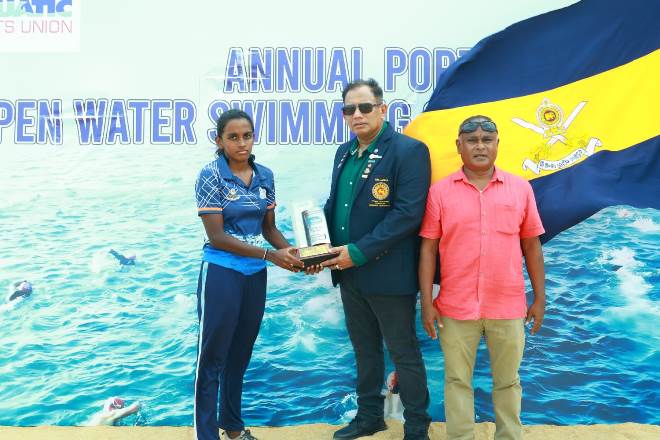 During the National Open Water Sea Swimming Championship 2026, Sri Lanka Army Service Corps Lady Soldier S/2140605 De Silva NHA secured, 1st place in the 10 km Open Women’s event, and 2nd place in the 5 km Open Women’s event.