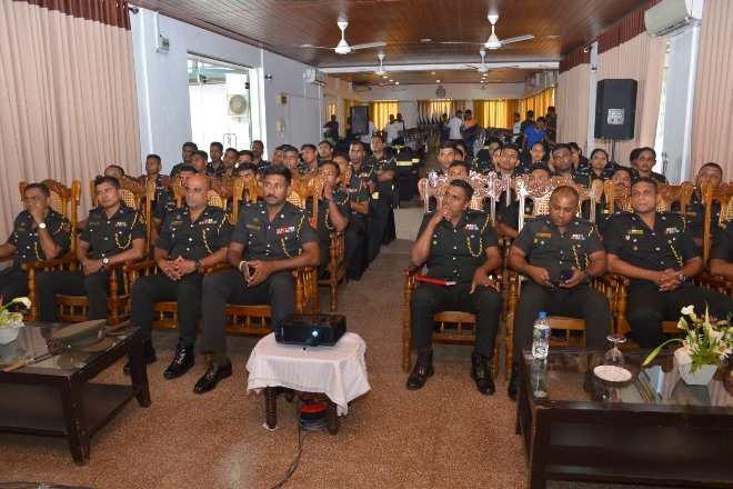 The second lecture was conducted by Lieutenant Colonel DM Jayasinghe Lsc, SO 1(OCPC) - Regimental Centre, on Officers' Career Planning. This lecture focused on career development, professional growth, and effective planning within the military service. Officers gained valuable guidance on managing their careers, enhancing professional skills, and preparing for future responsibilities.