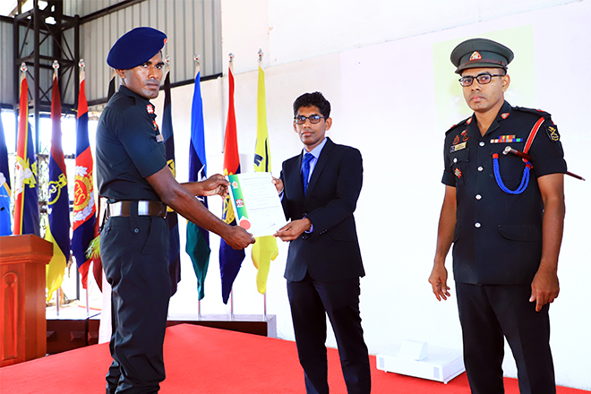 The certificates were awarded by the Commandant SLAVF, Brigadier (Administration) -SLAVF, Brigadier (Logistics)- SLAVF, Mr. J.D Niranja S. Jayakodi, the Director, National Productivity Secretariat and Mr. Sugath Dissanayaka, Productivity Advisor of the National Productivity Secretariat.