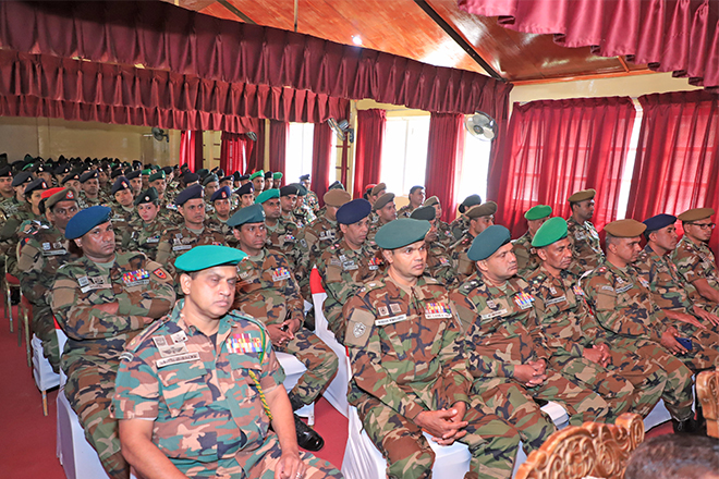 The Commandant further emphasized the importance of self-realization in all aspects in order to perform one’s role successfully, both in the military career and in civil life, thereby contributing to an effective working environment. As mutual respect is a fundamental element of military harmony, he reminded all personnel to honour and respect the duties and roles entrusted to others. Moreover, the Commandant underscored the imperative of upholding exemplary military bearing, together with the duties, responsibilities, and accountability that define the profession of arms. The senior officer highlighted the pivotal role of the soldier and the Sri Lanka Army as a whole in contributing to the national aspirations and developmental efforts of the country. He reiterated the need to continuously elevate military stance by nurturing the core essences of military professionalism, discipline, and commitment.