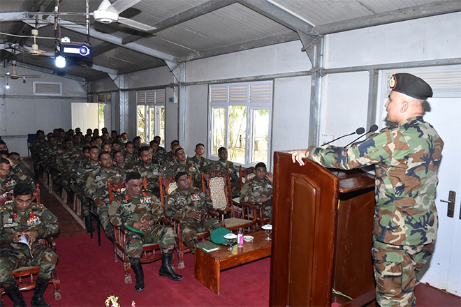 Addressing the troops, the Commandant emphasized the importance of the Government-led “Clean Sri Lanka” initiative, which seeks to foster a sustainable future through transformative attitudes, ethical values, and committed service. He underscored the critical role of the Sri Lanka Army in supporting and ensuring the success of this national effort under the guidance of the Commander of the Army. In particular, the Commandant highlighted the importance of upholding military stance highlighting duties, responsibilities, and accountability in the context of military