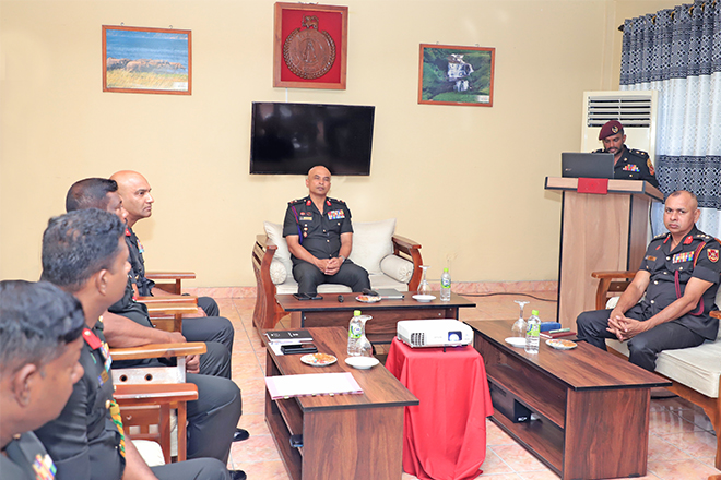 Following the initial formalities, next session dedicated for a constructive briefing. Accordingly, the Commanding Officer of the 2 SLAPC briefed on the current undertakings of the battalion.