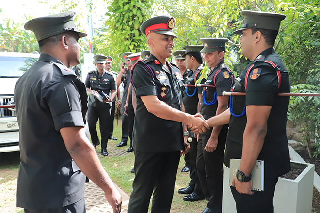 In compliance with the day’s itinerary, the Commandant SLAVF paid a courtesy visit to 10 SLNG in the evening hours. Upon the arrival of the Commandant to the 10 SLNG, he was warmly received by Major S E J C Hemasingha, the Commanding Officer of 10 SLNG.