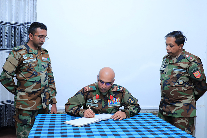 Following the event sequence, a sapling was planted by the Commandant, SLAVF, to commemorate his visit to the battalion. Concluding the visit, the Commandant undertook a camp visit and recorded a note of appreciation in the visitors’ book, recognizing the efforts and dedication of the personnel of the battalion.