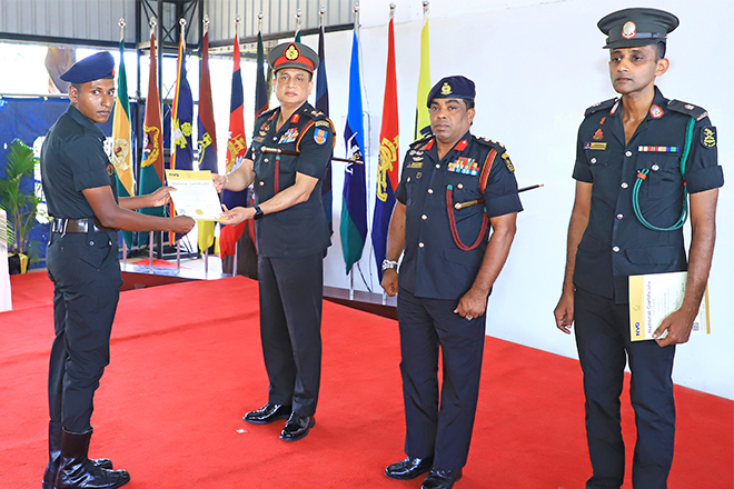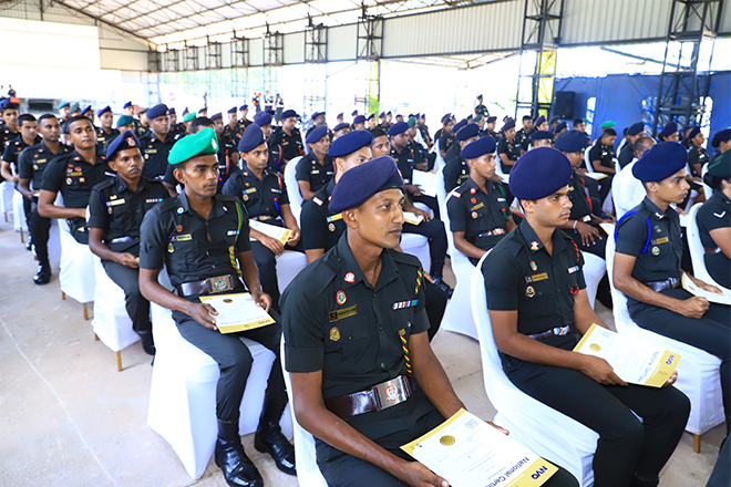 The occasion was attended by Major General W M N K D Bandara RWP RSP USP ndu psc - the Director General Training, Mr. J Indika- Deputy Director of the Vocational Training , Senior Officers, Officers and Other Ranks who represented the Headquarters SLAVF and the SLAVFTS. A homage is offered to the organizing committee for successful conclusion of the ceremony and Army Band & Performing Arts for their integration in adding a glamour to the programme.