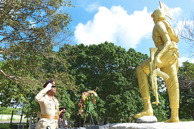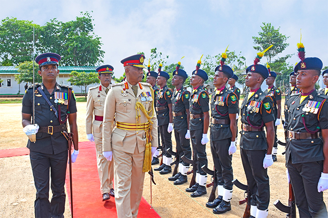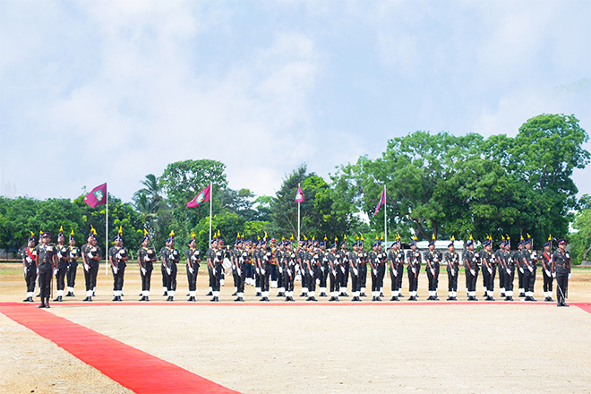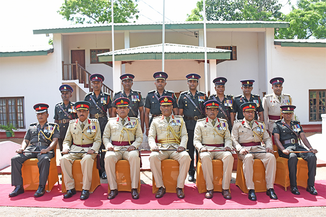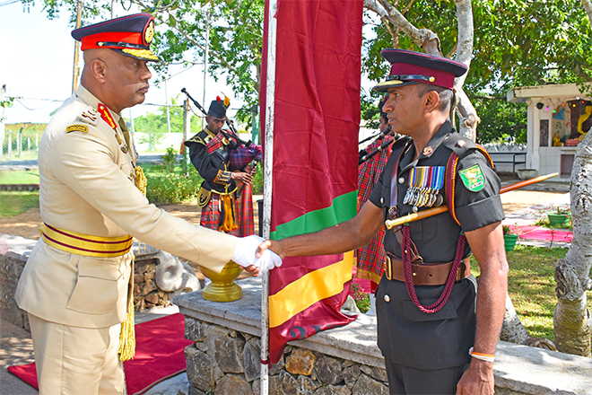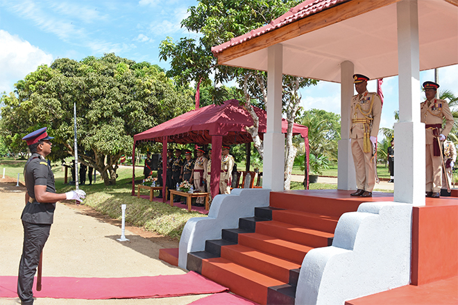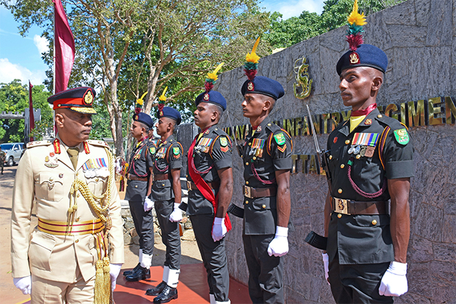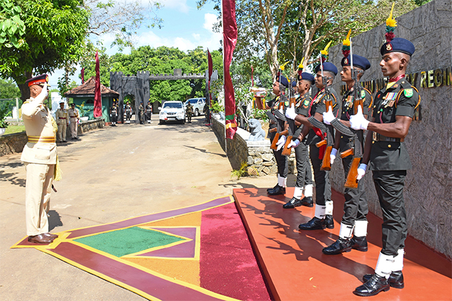 The military formalities were reviewed with a Guard Turnout and a Guard of Honour awarded by the troops of the 2 nd (Volunteer) Vijayabahu Infantry Regiment. Afterwards, the senior officer paid tribute to the members who laid down their lives by laying a wreath at the Regiment's monument. Accordance to the military hierarchical culture, the senior officer called on the Commander of the Security Forces Headquarters prior to the commencement of the day’s scheduled events.