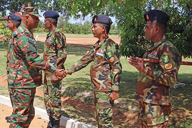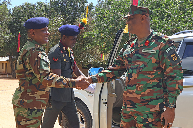 Upon arrival, Major General Janith Bandara was warmly received by the Brigadier Coordinating Officer and the Assistant Colonel Coordinating Officer of the Security Forces Headquarters (Wanni).