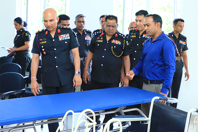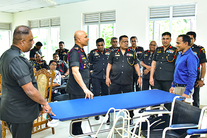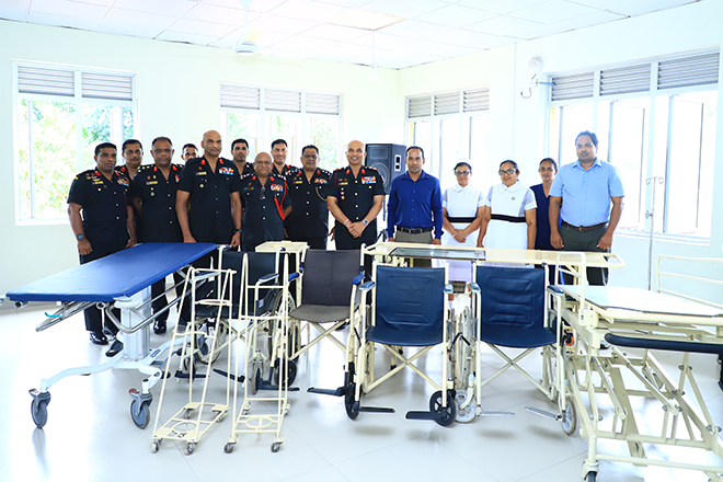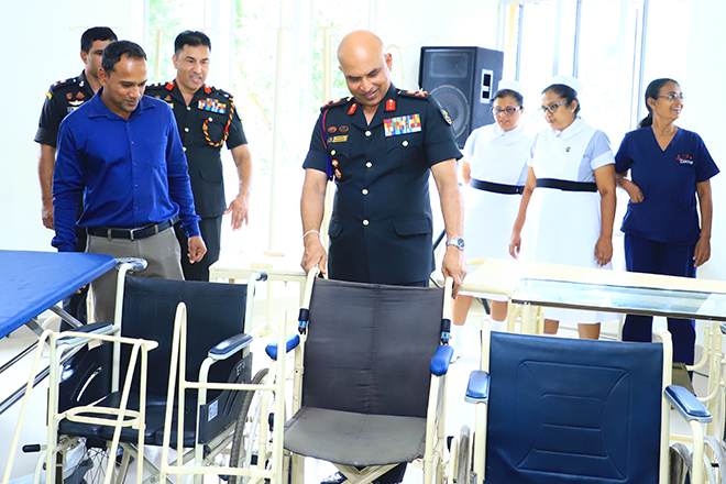Accordingly, seven wheel chairs, three trollies, eight saline stands and beds which had been out of service due to the shortage of maintenance back in service with the assistance of troops of Sri Lanka Electrical and Mechanical Engineers Workshop, Kosgama.