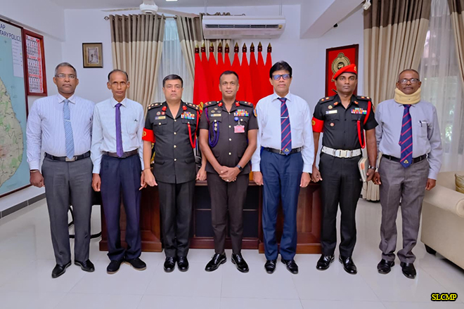 A distinguished group of veterans of the Sri Lanka Corps of Military Police (SLCMP), including the President of the SLCMP Veterans’ Association, Major H M R P Gonawala (Retd), the National Organizer, WO 1 D M S Premasiri (Retd), the Treasurer, WO 1 G K A C Gunarathna (Retd), and the Assistant Secretary, WO 1 H J Janz (Retd), visited the Regimental Headquarters of the SLCMP on 13 September 2025.