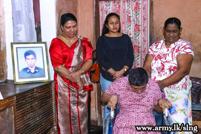 The visit was made to the family of Late Corporal HM Sadhananda (S/10Q00401) of the 10th Battalion Sri Lanka National Guard, who was killed in action as a result of a terrorist attack on 25 July 1995 in the Eluvankulam area.