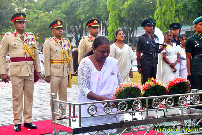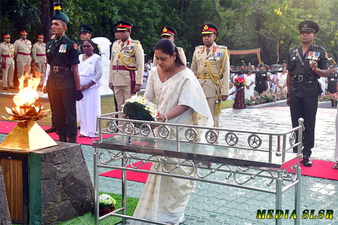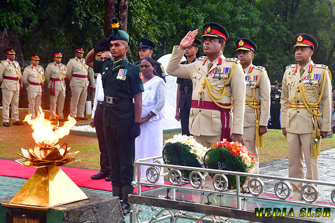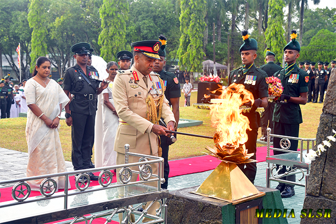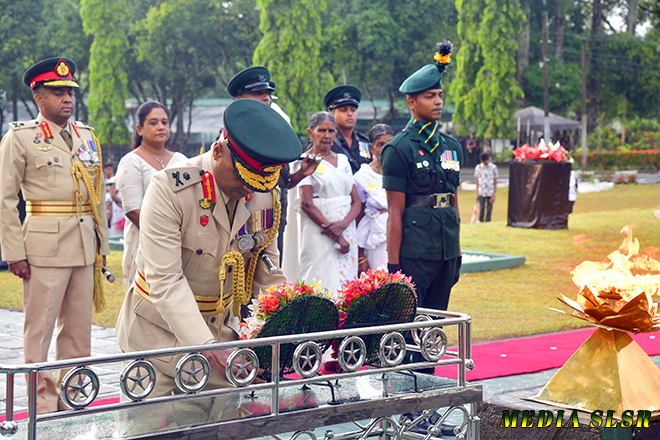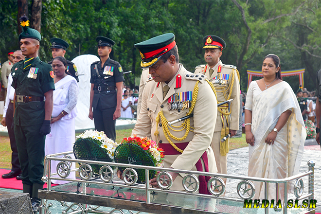 During the event, floral tributes were placed at the Sri Lanka Sinha Regiment War memorial and transferred merits to 144 officers and 3760 other rankers who made the supreme sacrifice while defending the country’s territorial integrity.