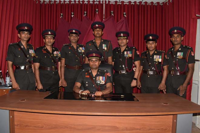 Newly appointed Commanding Officer was warmly welcomed by Maj H M K S Herath psc the Second in Command and saluted with the Guard Turnout. The Commanding Officer symbolically placed his signature for an official document amidst religious blessings to signify the acceptance of the duties. Second in Command, all Officers and Other ranks attended the occasion.