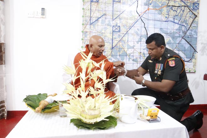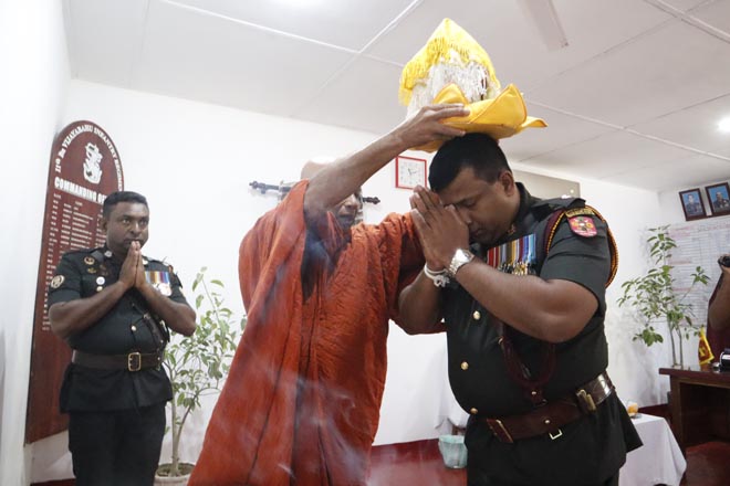 The newly appointed Commanding Officer was warmly welcomed by Major TPCM Thennakoon, the Second-in-Command, and was honoured with a Guard Turnout. As part of the ceremony, Major Thilakarathne placed his signature in an official document amidst religious observances, symbolizing the formal acceptance of his duties. The Second-in-Command, all officers, and other ranks of the Battalion were present to witness this significant occasion.