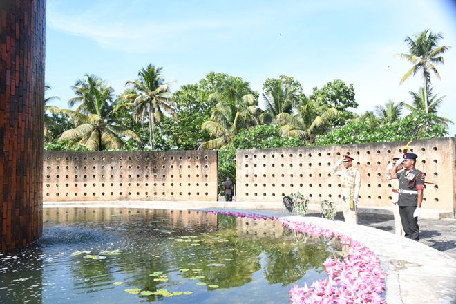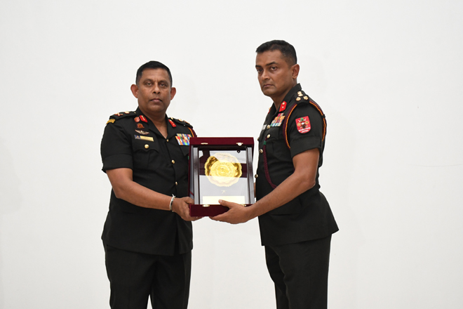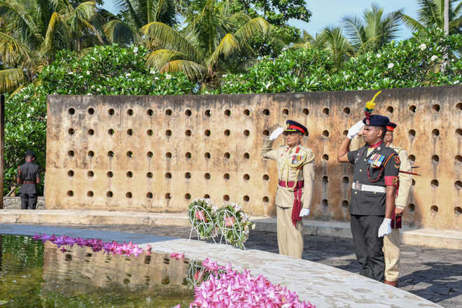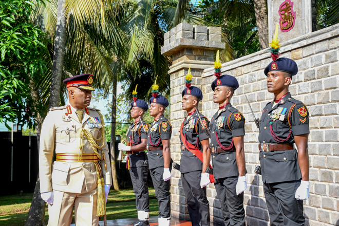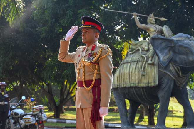 Tributes were respectively offered by warmly receiving the day's Guests of Honour and subsequent Guard Turnout at the entrance in accordance with military formalities. Afterwards, in remembrance of all fallen Vijayabahu War Heroes, Major General Janith Bandara, Brigadier Sampath Samarathunga and Brigadier Pradeep Kalupahana laid the floral wreaths at the War Heroes Monument and PWV Monument paying their tributes in a sincere ceremony. Simultaneously, a Guard of Honour was accorded to newly promoted Major General Janith Bandara in keeping with military traditions.