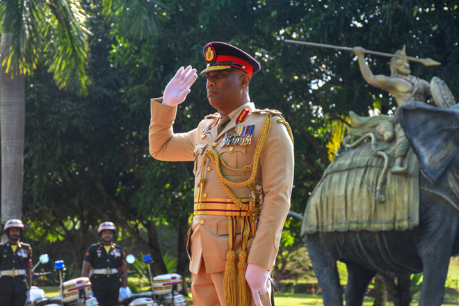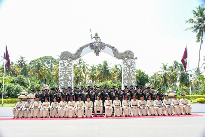 Vijayabahu Infantry Regiment, following its’ traditions and military formalities with the blessings of the Commander, Security Forces – Central and Colonel of the Regiment of the Vijayabahu Infantry Regiment, Major General Nalin Bandaranayake USP and supervision of the Centre Commandant, saluted the newly promoted Major General B M R J Bandara, Brigadier S M C A S Samarathunga RSP and Brigadier K M U P Kalupahana USP psc on 27 April 2025 in a fitting ceremony, held at the VIR Regimental Centre, Boyagane.
