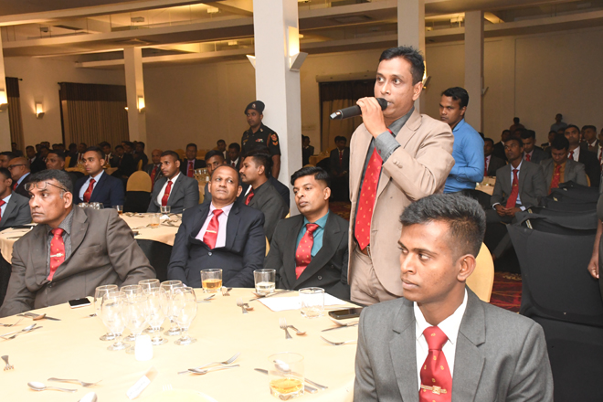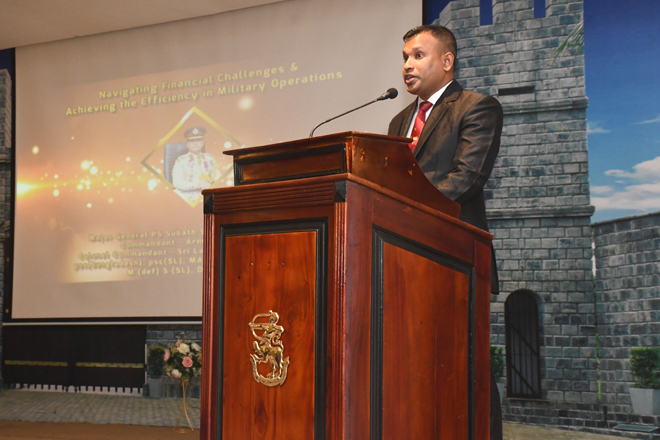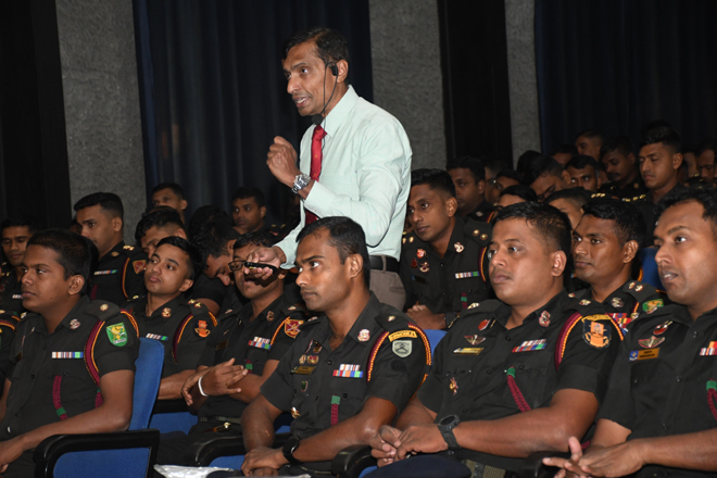 In line with the Officers' Training Day, another successful Diners Club session was held at "The Salute" Multifunctional Hall, Boyagane with the participation of officers serving in various military establishments including officers of VIR Battalions. As the guest speaker of the night, Maj Gen P S Subath Sanjeewa RSP nps psc, Colonel Commandant Sri Lanka Army Medical Corps and the Commandant Army War College conducted an informative and thought provoking lecture on the topic "navigating Financial Challenges and Achieving the efficiency in Military Operations". Officers took the opportunity to share their views with the audience and had an interactive session with the guest speaker.