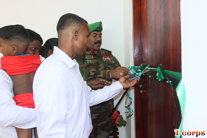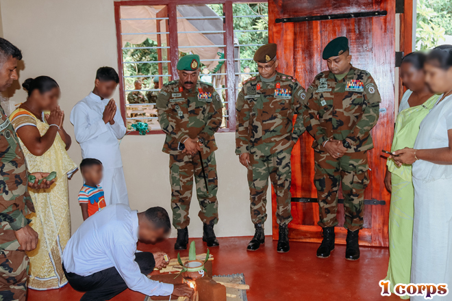 Major General PKWWMJSBW Pallekumbura RWP RSP ndu psc, General Officer Commanding 58 Infantry Division, attended the event as the Chief Guest and formally presented the house to the family.