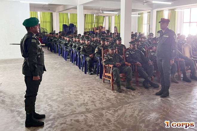 The Brigade Commander was warmly welcomed by the Commanding Officer and all Officers of the 5th Battalion the Gamunu Watch. He was then escorted around the camp premises and took part in a formal tea gathering with all Officers and Other Ranks of the battalion.