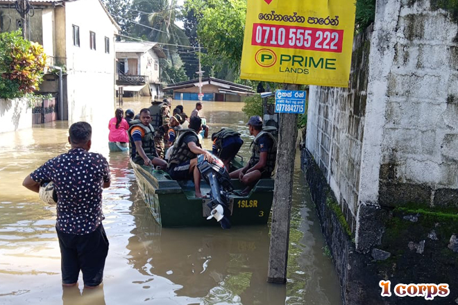 රටේ පවතින අයහපත් කාලගුණික තත්ත්වය හේතුවෙන් දිවයිනේ විවිධ ප්‍රදේශවල හදිසි තත්වයන් ඇතිවීම හේතුවෙන් 2025.11.28 වන දින සිට 2025.11.30 වන දින දක්වා වූ කාලය තුල මීරිගම, අලව්ව, රුවන්වැල්ල, ගිරිඋල්ල, දොම්පේ සහ වේයන්ගොඩ යන ප්‍රදේශවල ඇති වූ සහන සේවා මෙහෙයුම් සහ ගලවා ගැනීමේ මෙහෙයුම් සිදු කරන ලදී. මෙහිදී 1 බලකාය යටතේ ඇති 58 වන පාබල සේනාංකයේ සහ 583 පාබල බලසේනාවේ උපදෙස් යටතේ 1 වන බළඇණිය ශ්‍රී ලංකා සිංහ රෙජිමේන්තුවට අයත් භට පිරිස් විසින් මෙම මෙහෙයුමේදී විපතට පත් ළමුන් ඇතුළු සිවිල් වැසියන් 395 දෙනෙකුගේ ජීවිත ආරක්ෂිතව මුදා ගැනීමට සමත් විය.
