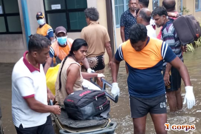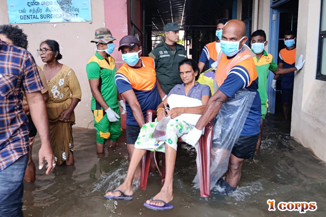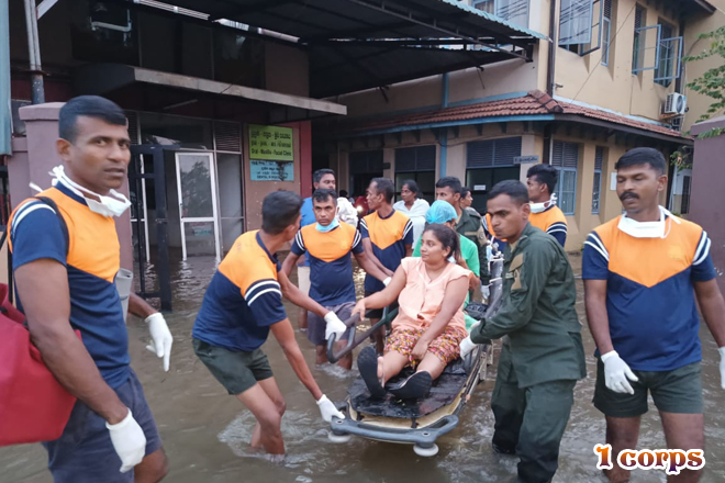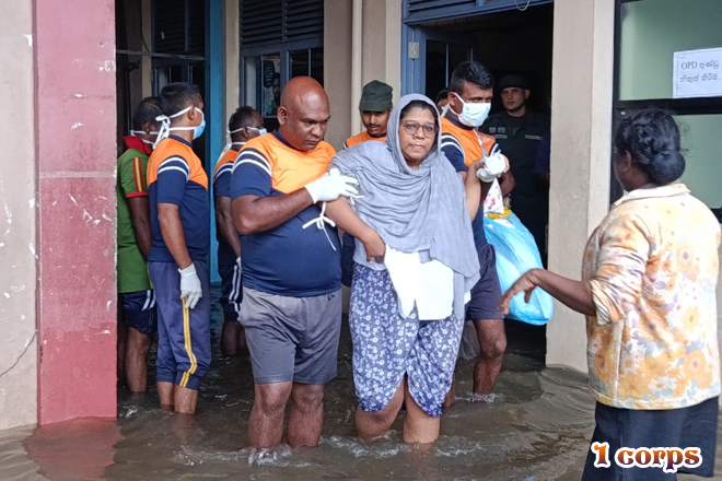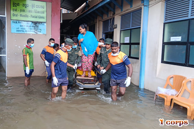 රටේ පවතින අයහපත් කාලගුණික තත්වය හේතුවෙන් දිවයිනට බලපා ඇති හදිසි ව්යයසනකාරී තත්වය මත 2025.11.30 වන දින හලාවත දිස්ත්රික් මහ රෝහලට බලපෑ ගංවතුර හේතුවෙන් එහි නේවාසිකව ප්රථිකාර ලබන රෝගීන්ගේ ජීවිත බේරා ගැනීම සඳහා සහන සේවා කටයුතු සිදු කරන ලදී. මේ සඳහා 1 බලකාය යටතේ ඇති 58 වන පාබල සේනාංකයේ සහ 583 පාබල බලසේනාවේ උපදෙස් යටතේ 6 වන විජයබාහු පාබල බළඇණියට අයත් භට කණ්ඩායම් ගලවා ගැනීමේ මෙහෙයුම් සඳහා සහභාගී වූ අතර, එහිදී රෝගීන් 62 ක් පමණ ආරක්ෂිතව ඉවත් කර ගැනීමට මෙම භට පිරිස් සමත් විය.